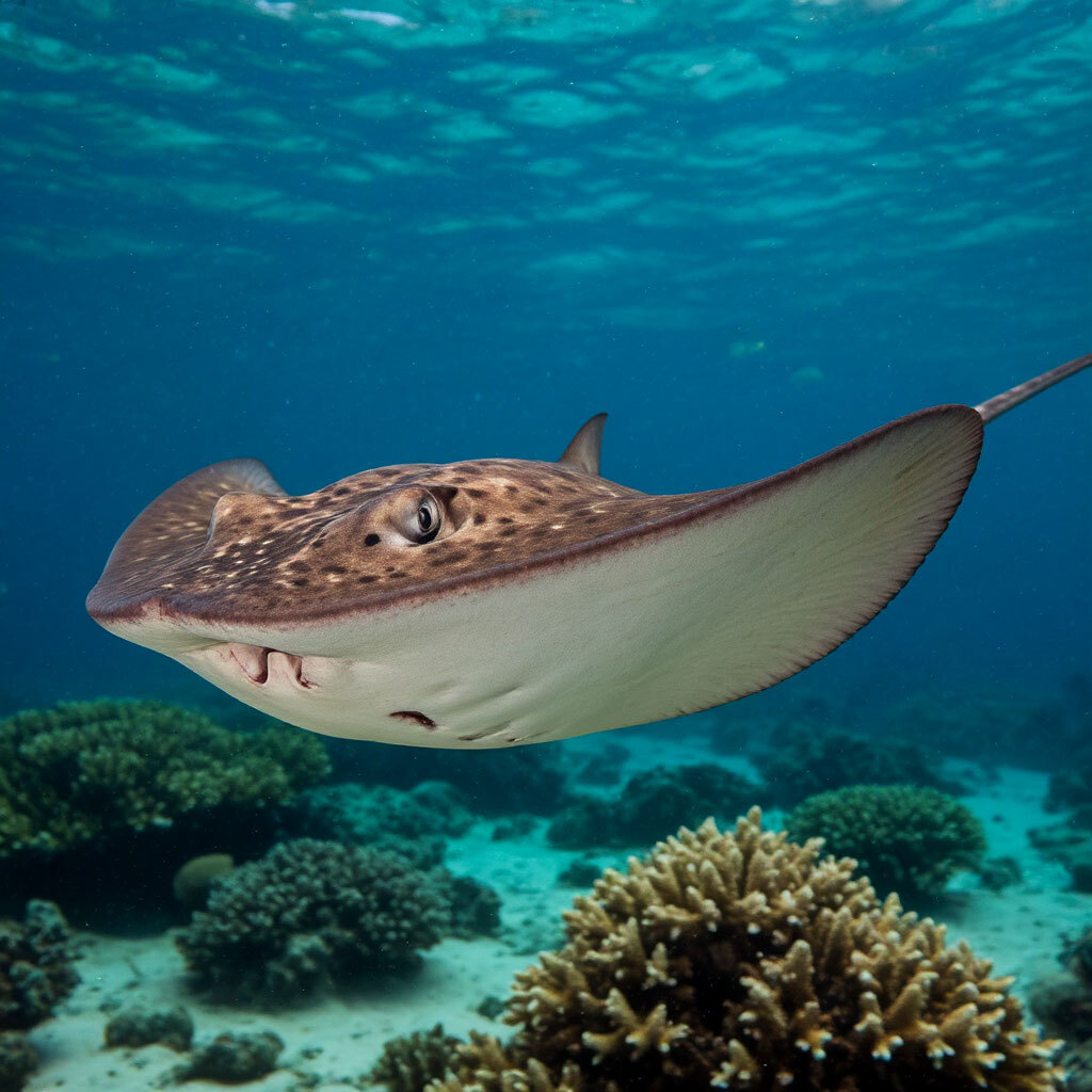Черноморский скат – загадочный обитатель прибрежных глубин. У него уплощённое ромбовидное тело и длинный тонкий хвост (часто с ядовитым шипом), глаза расположены на верхней стороне, а рот и жабры – снизу. Верхняя сторона окрашена в серо‑коричневые тона, низ – белый. В Черном море встречаются в основном два вида: колючий скат (морская лисица) и обыкновенный хвостокол (морской кот). Эти хищники ведут придонный образ жизни, зарываясь в песок или ил и поджидая моллюсков, ракообразных и мелкую рыбу. Несмотря на внушительный вид (до метра в «размахе крыльев» у крупных особей), скаты обычно не агрессивны к человеку. Однако ловить их следует осторожно из‑за острого шипа на хвосте